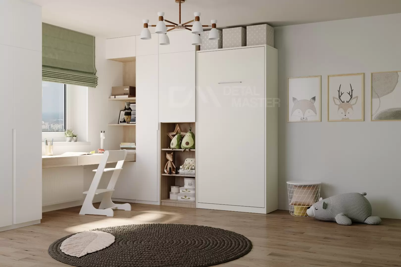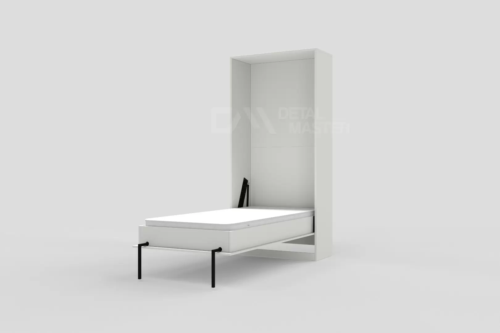 Детская шкаф-кровать "Flip Bed Start" работает на механизме раскладывания собственной разработки "Start". Кровать раскладывается легким движением руки, превращаясь в полноценное спальное место. Просто потяните ее за ручки, расположенные на фасаде и выставите ножки-опоры.