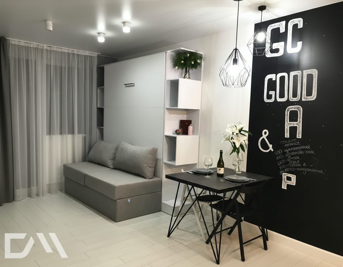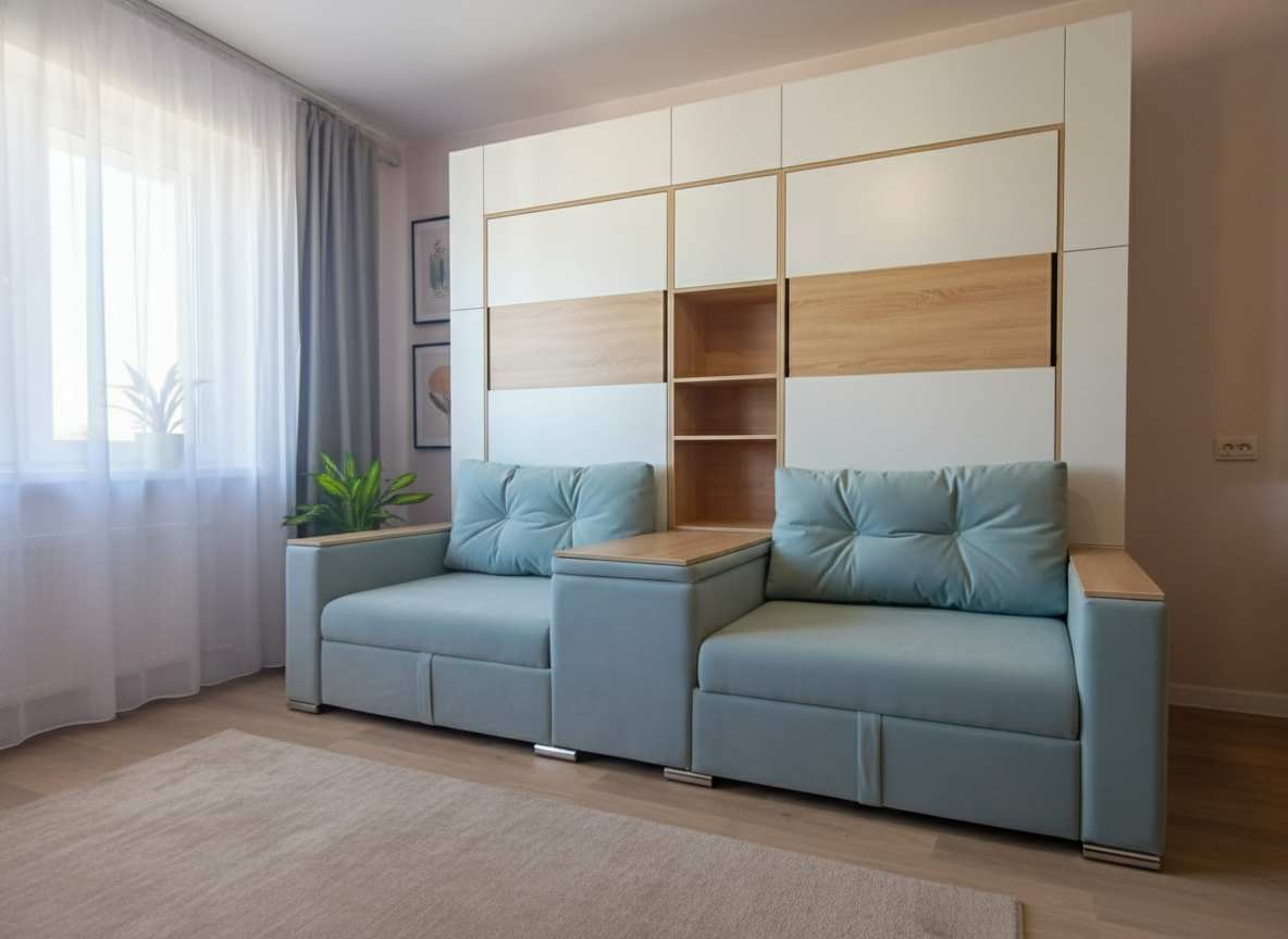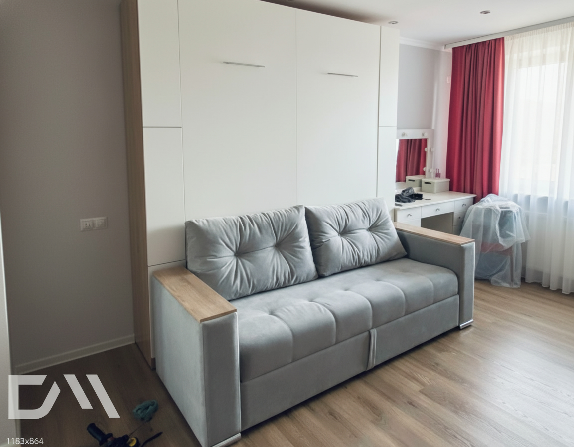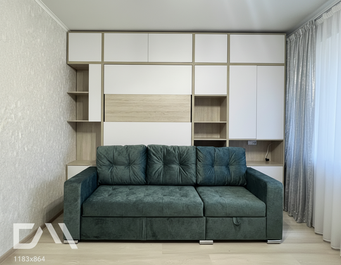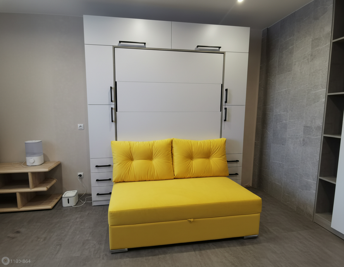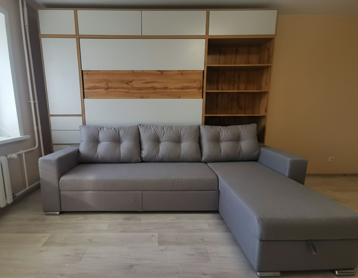 - Размер и пропорции. Учитывайте доступное пространство и размеры комнаты. Измерьте высоту потолков, ширину и длину помещения, чтобы выбрать шкаф-кровать с диваном, которая впишется и не будет создавать чувства переполненности или ущемления пространства.