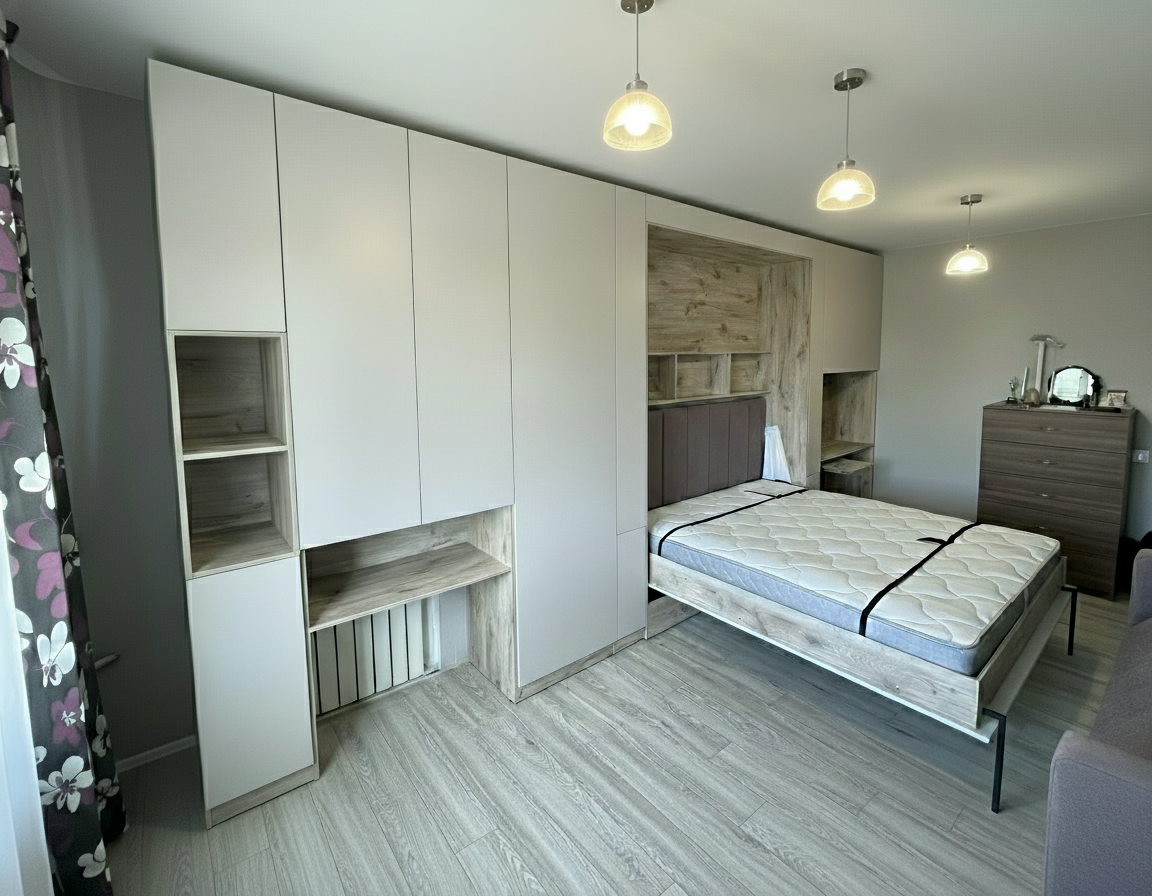 - Функциональность и трансформация. Оцените доступные варианты трансформации шкафа-кровати и выберите те, которые наилучшим образом соответствуют вашим потребностям. Рассмотрите дополнительные функции, такие как встроенные полки, гардеробные отделы или столы, которые могут улучшить удобство использования.